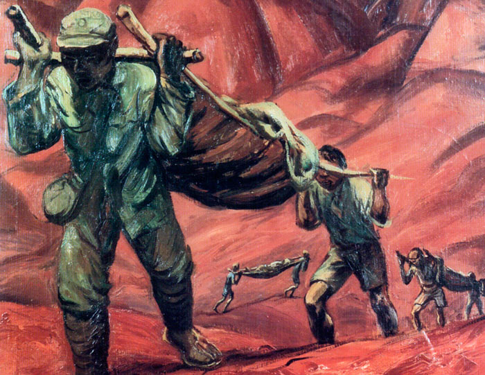 The World War II art belonging to the Army came from a variety of sources. Much of it was the result of a program whereby Life magazine hired artists as war correspondents to produce a pictorial record of the war. Abbott Laboratories, a large pharmaceutical firm, also commissioned a number of artists to record the work of the Army Medical Corps during the war. After the war the art from both programs was entrusted to the care of the Army. The Army also had a number of artists in uniform who recorded their impressions of the war. While most of the artwork in this series was produced by soldier-artists, the Life and Abbott collections are also represented.